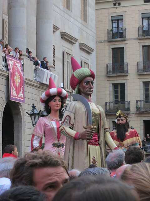 In the evenings we wandered and ate tapas and people watched and came across several events associated with La Mercé festival which began while we were there. There was this procession of giant figures